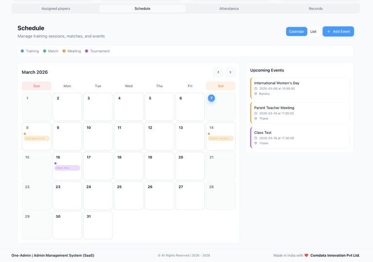 A SaaS - Admin Management System built for Coaching and Sports Academies.