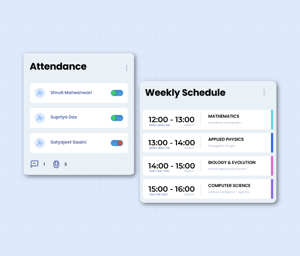 Tired of tracking attendance, fees, and academic progress separately? Our Parent Dashboard gives you real-time access to attendance records, payment status, and student progress reports—helping you stay updated without constant follow-ups.