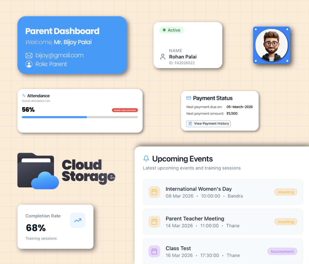 One Admin is a unified administration and operations platform designed for sports academies, coaching institutes, and educational organizations. It helps manage attendance, staff, coaches, students, fees, communication, and reporting from a single system.